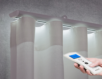 Controlling the curtains and integrated LED-lighting by remote control or building automation system guarantees a unique experience of atmosphere and comfort in any room.