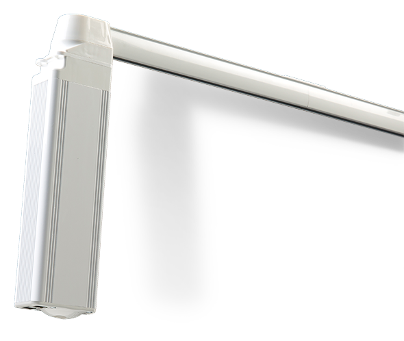 This curtain motor has an integrated power adaptor and only needs a mains cable. Furthermore, the RF multi receiver is nintegrated in the motor itself, allowing for an even cleaner look of the system. In addition to this, the motor speed can be increased by up to 20%, allowing for speeds of up to 18 cm per second. Finally, the motor is able to carry curtain weights of up to 40 kg.